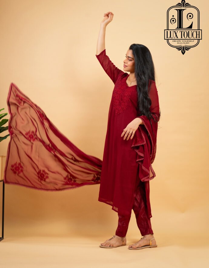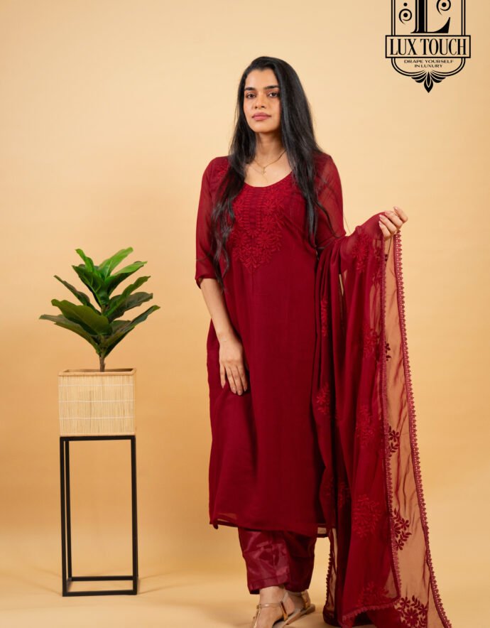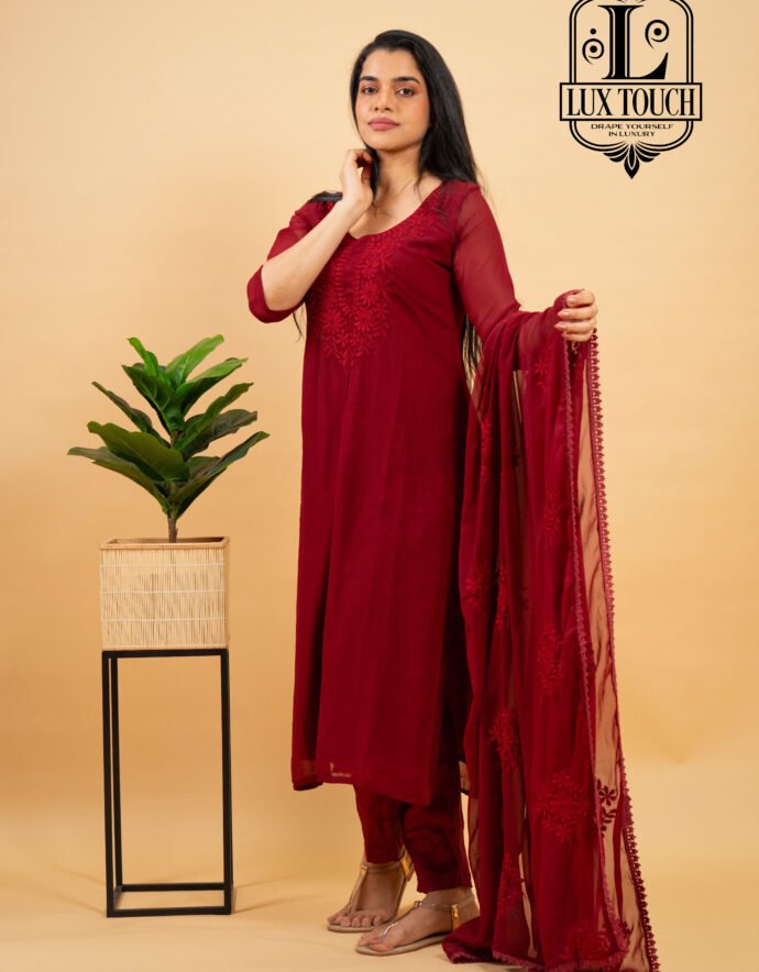 Embrace the artistry of traditional Indian embroidery with this stunning Chikankari Printed Suit Set. The outfit features an elegant blend of delicate chikankari work on soft, breathable fabric with vibrant prints, exuding sophistication and heritage. The set includes a kurta adorned with floral chikankari detailing, comfortable matching bottoms, and a lightweight dupatta that completes the ensemble. Ideal for day-to-night wear, this suit set offers a graceful silhouette while ensuring all-day comfort. Whether for a festive celebration or a casual outing, this Chikankari Printed Suit Set is a must-have addition to your ethnic wardrobe, reflecting beauty and craftsmanship in every stitch.