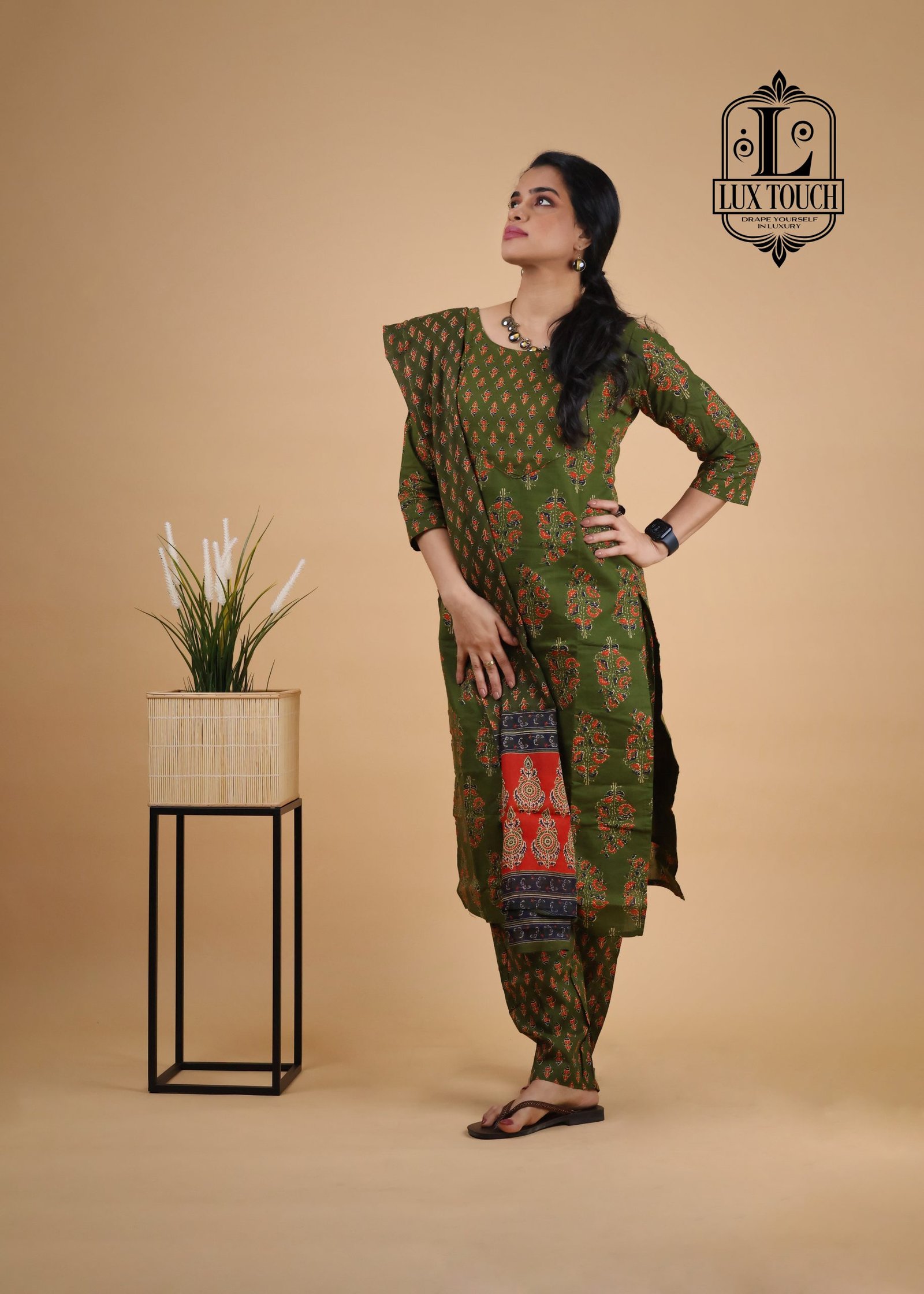 Embrace comfort and style with our Cotton Printed Suit Set with Dupatta. Crafted from breathable cotton, this set features a beautifully designed printed pattern that stands out. The soft fabric ensures all-day comfort, making it perfect for both casual wear and more formal occasions. The set includes a matching dupatta that complements the suit, adding a touch of elegance to your look. Whether you’re attending a gathering or a festive celebration, this suit set will keep you looking chic and feeling at ease. Available in multiple sizes to fit every body type.