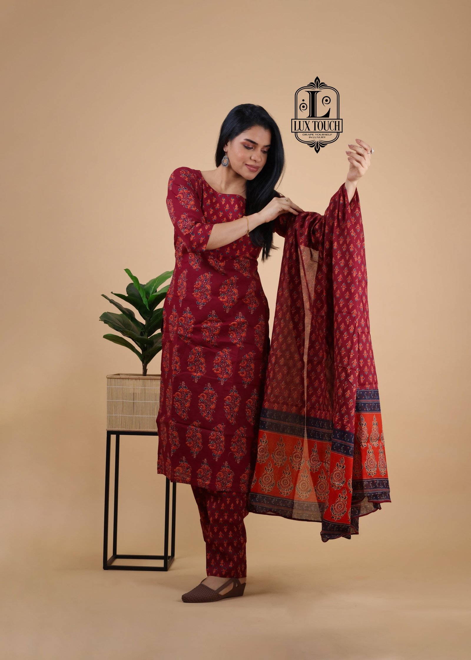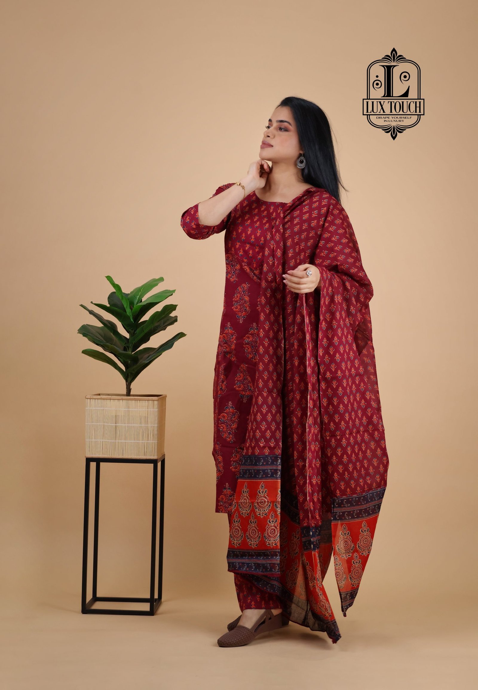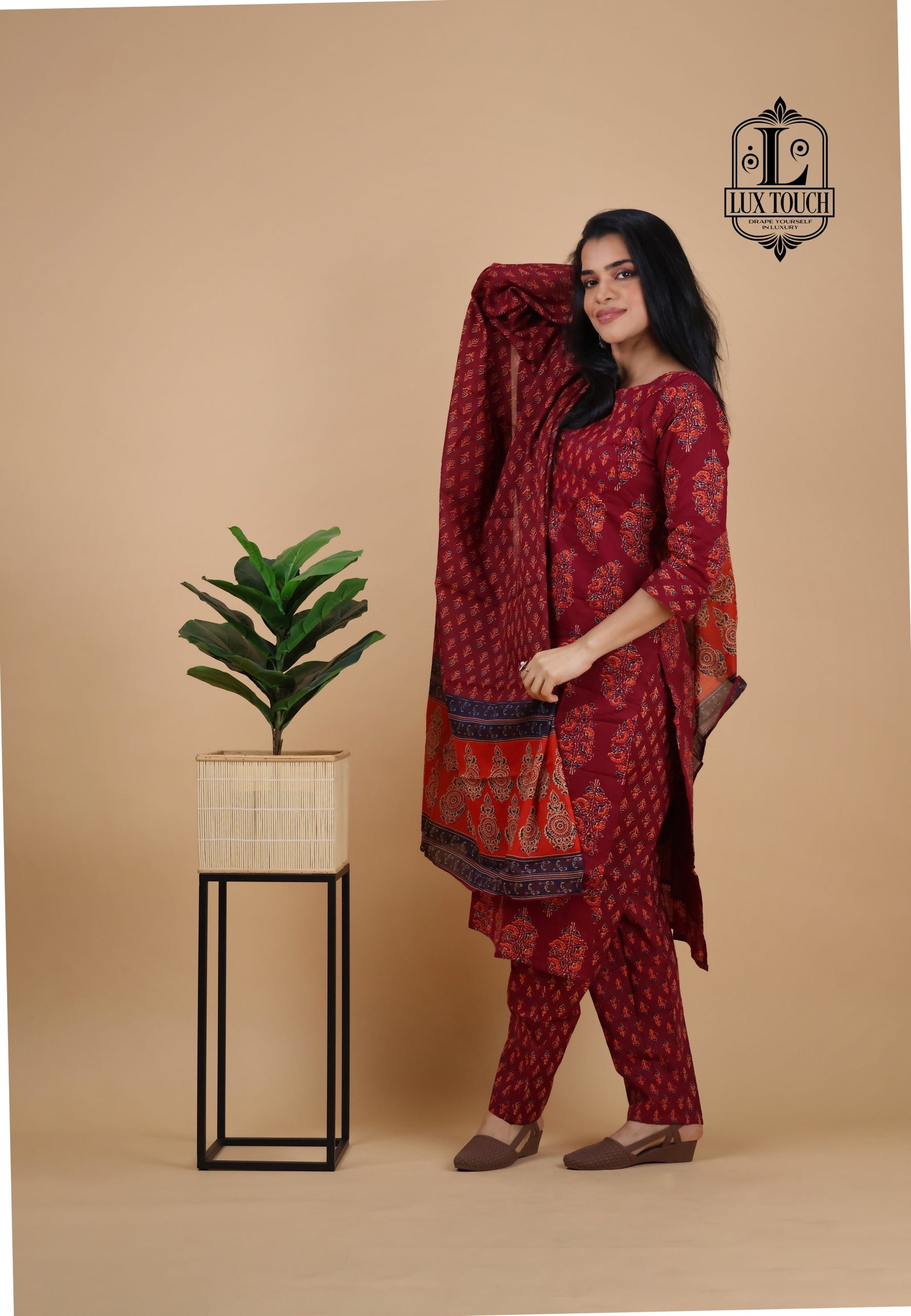 COTTON PRINTED SUIT SET WITH DUPATTA – luxtouch