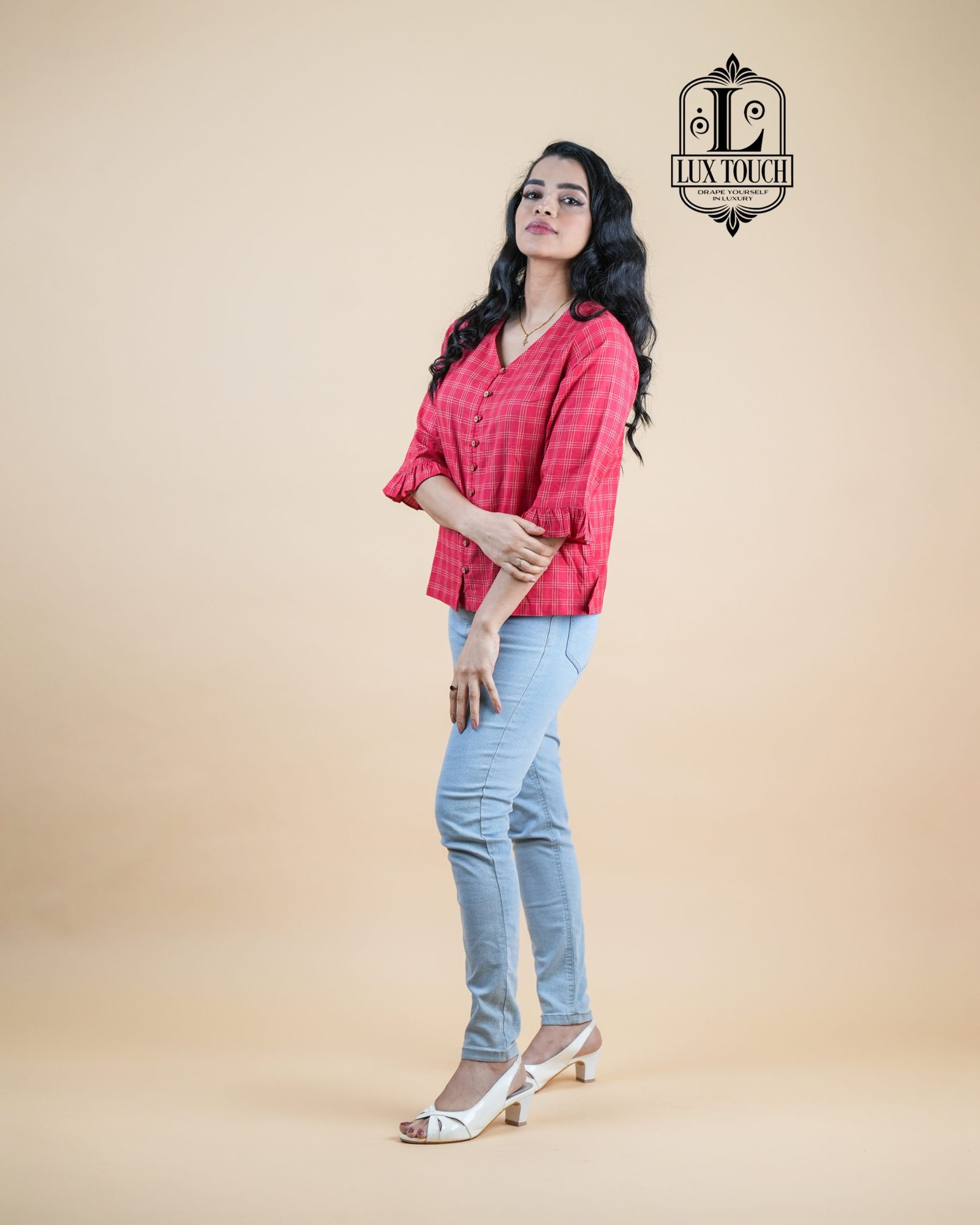 This cotton short top combines everyday comfort with effortless style, making it a must-have for casual wardrobes. Made from high-quality, breathable cotton, it feels soft against the skin and keeps you cool throughout the dayāideal for warm weather or layering during transitional seasons. The top features a flattering cut that sits just above the waist, offering a relaxed yet chic silhouette that pairs beautifully with high-waisted jeans, skirts, or shorts. Its simple design is elevated by subtle details like a round neckline, clean stitching, or a slightly cropped hem, depending on the style. Easy to dress up or down, this cotton short top is perfect for everything from laid-back weekends to casual outings or even lounging at home.