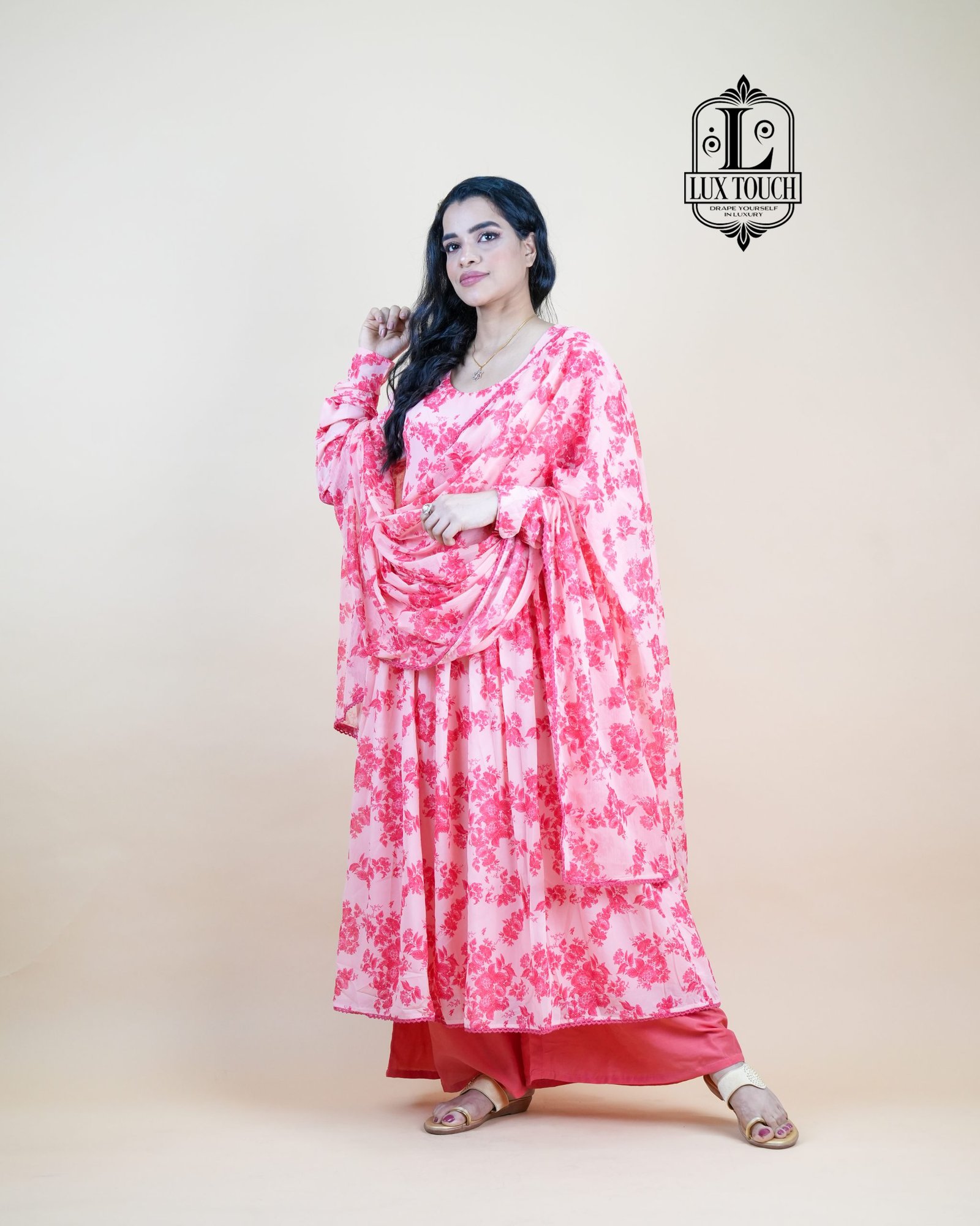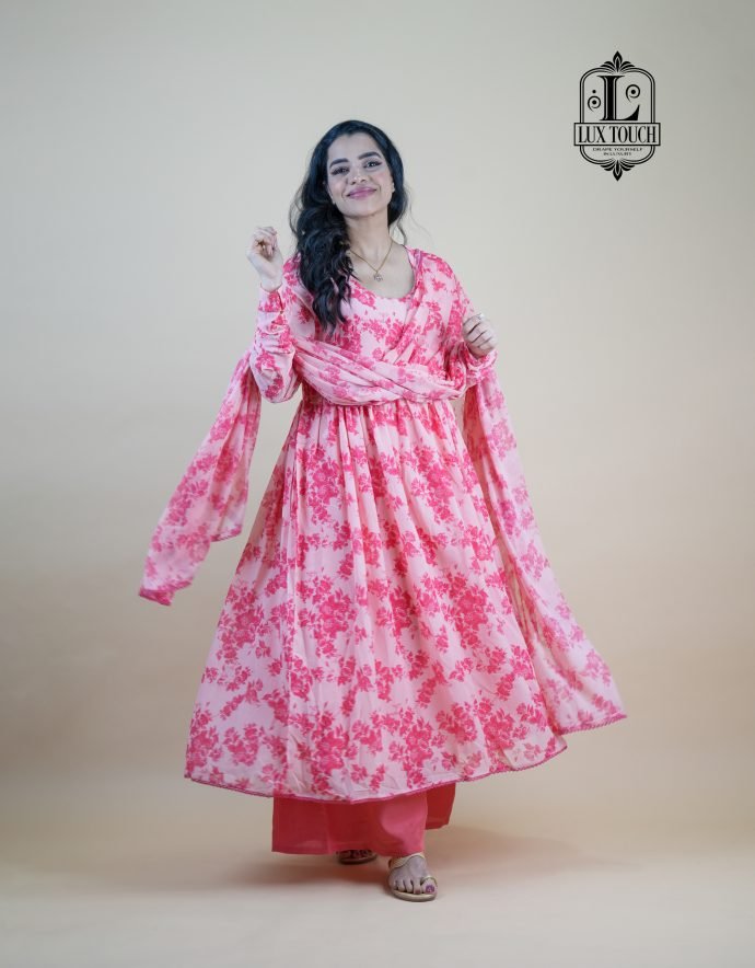“Radiate elegance with these beautifully designed floral Anarkalis, featuring soft, flowing silhouettes adorned with delicate floral prints. Crafted from breathable, lightweight fabrics like cotton, chiffon, or georgette, they offer both comfort and style. Perfect for festive gatherings, weddings, or casual celebrations, these Anarkalis combine traditional charm with a fresh, feminine touch. Pair with statement earrings and juttis for a complete ethnic look.”