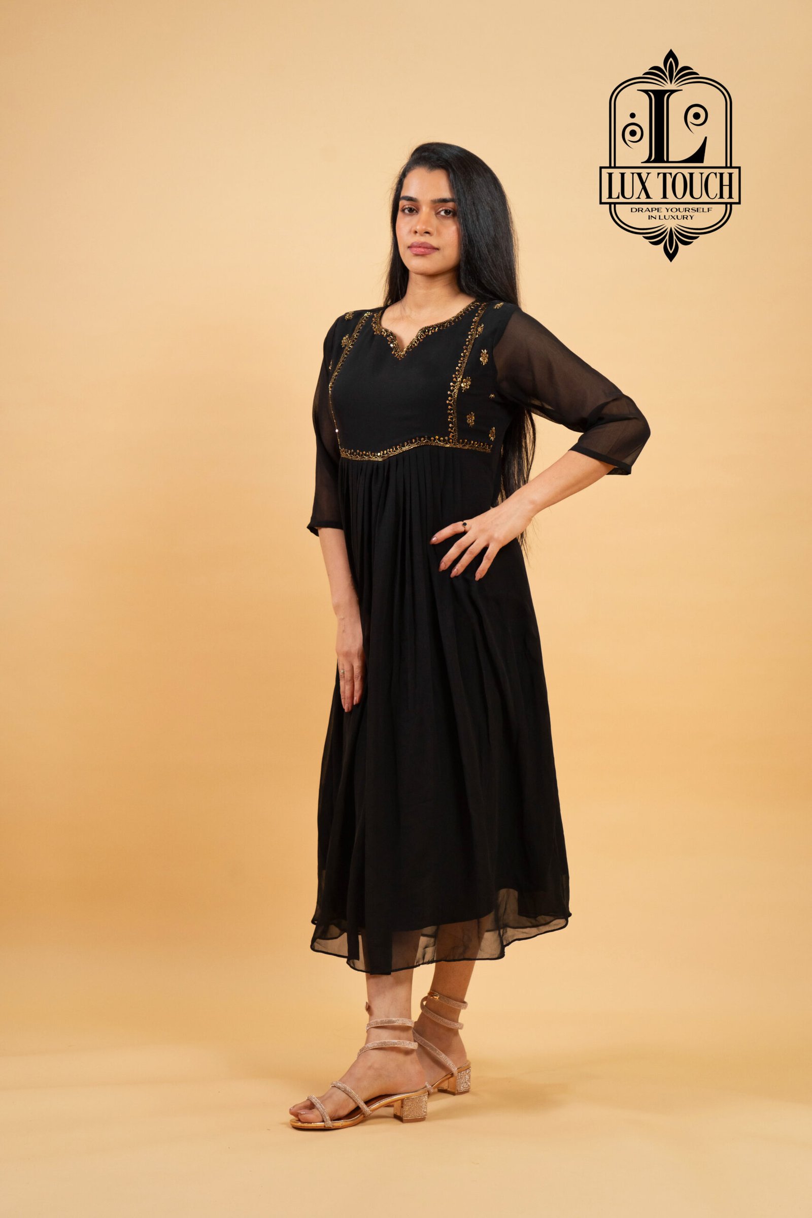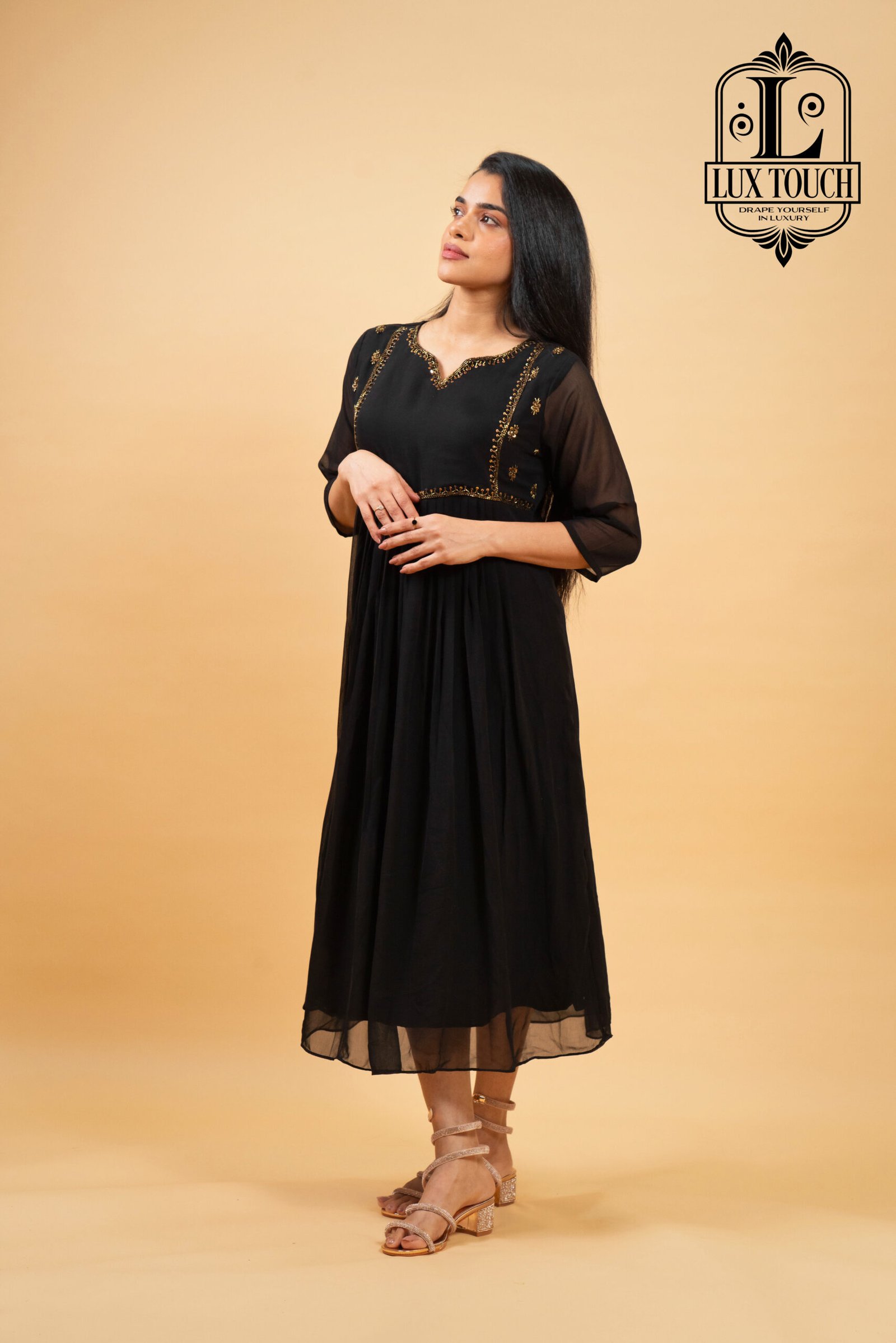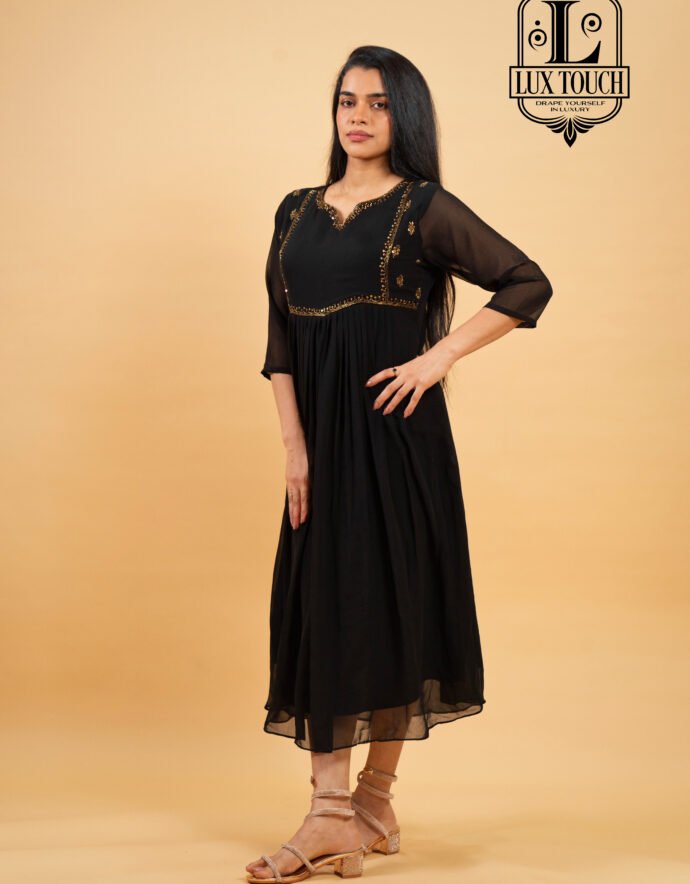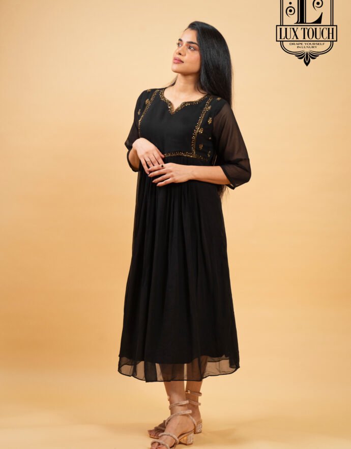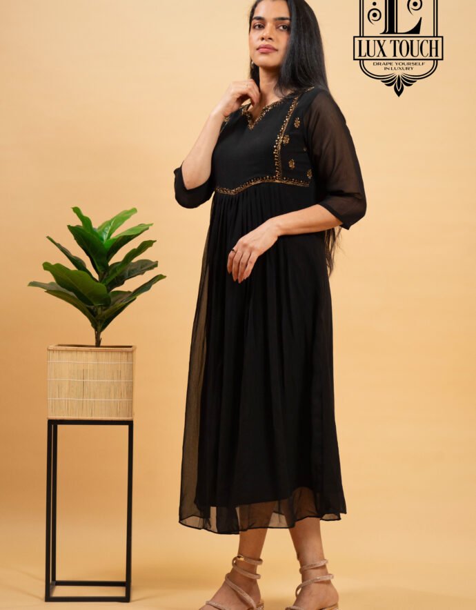 This handworked pleated kurti is a beautiful blend of traditional design and contemporary style. Meticulously crafted with fine pleats and adorned with intricate hand embroidery, this kurti exudes elegance and sophistication. Made from high-quality fabric, it offers comfort and durability, making it ideal for long wear. The unique handwork detailing enhances its charm, adding a subtle yet luxurious touch. Pair it with leggings, palazzos, or jeans to create a stunning look for any event, from casual outings to festive gatherings. Available in a range of colors and sizes, this kurti is a must-have addition to your ethnic collection.