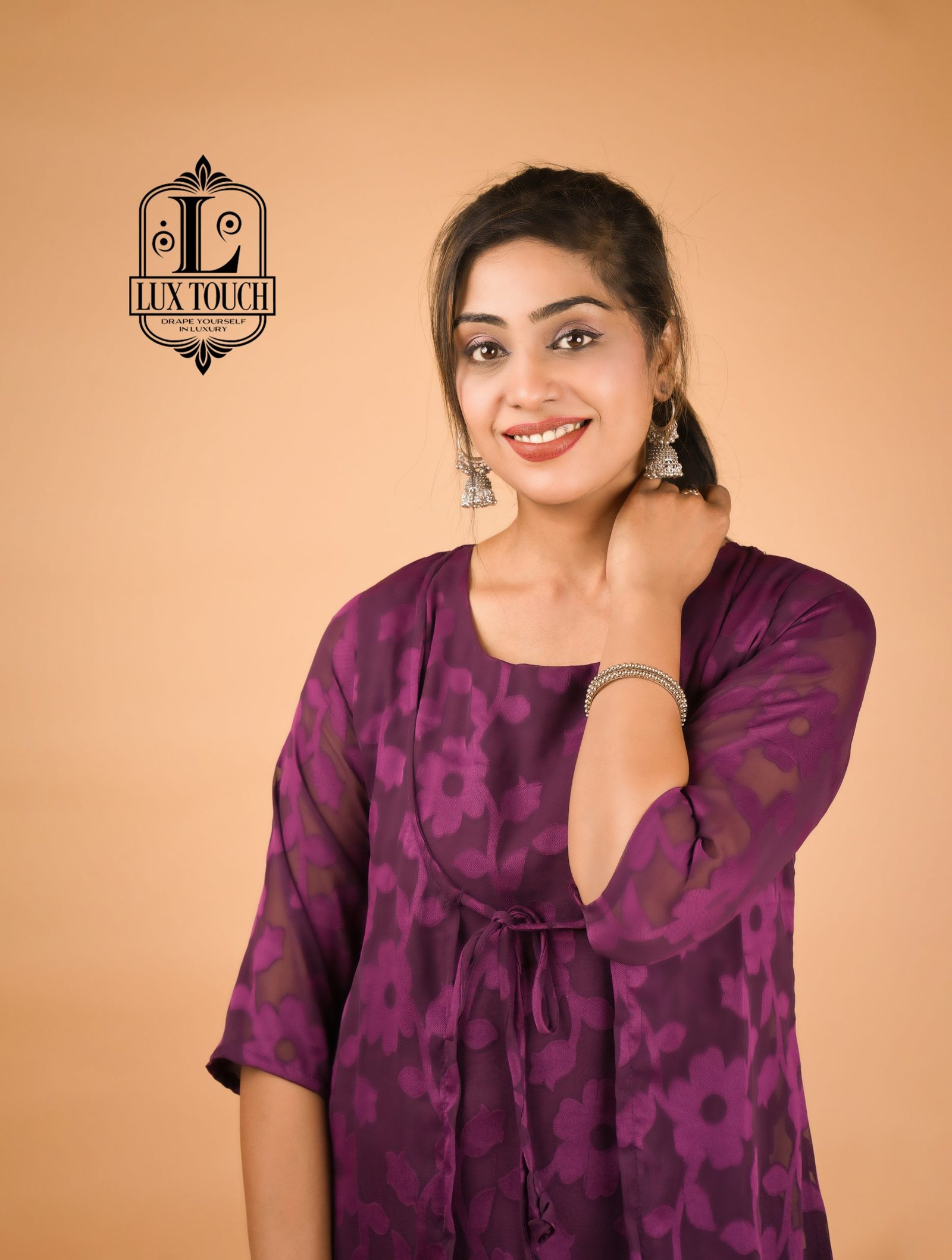 A jacket frock is a stylish fusion outfit that combines a traditional frock (dress) with a fashionable jacket. The frock typically has a fitted bodice and a flared skirt, made from fabrics like cotton, silk, or chiffon, while the jacket adds sophistication, often with intricate embroidery or embellishments. This outfit is perfect for formal events, weddings, or festive occasions, offering a modern yet elegant look. It blends comfort and style, making it ideal for those seeking a polished and contemporary appearance.