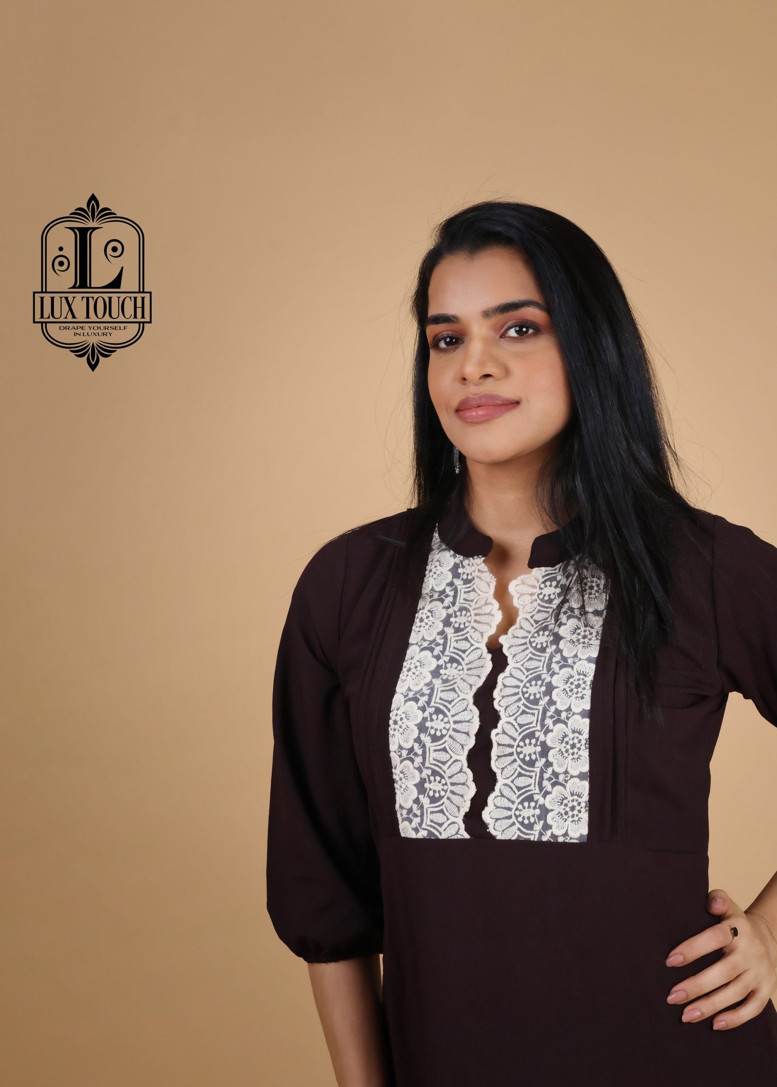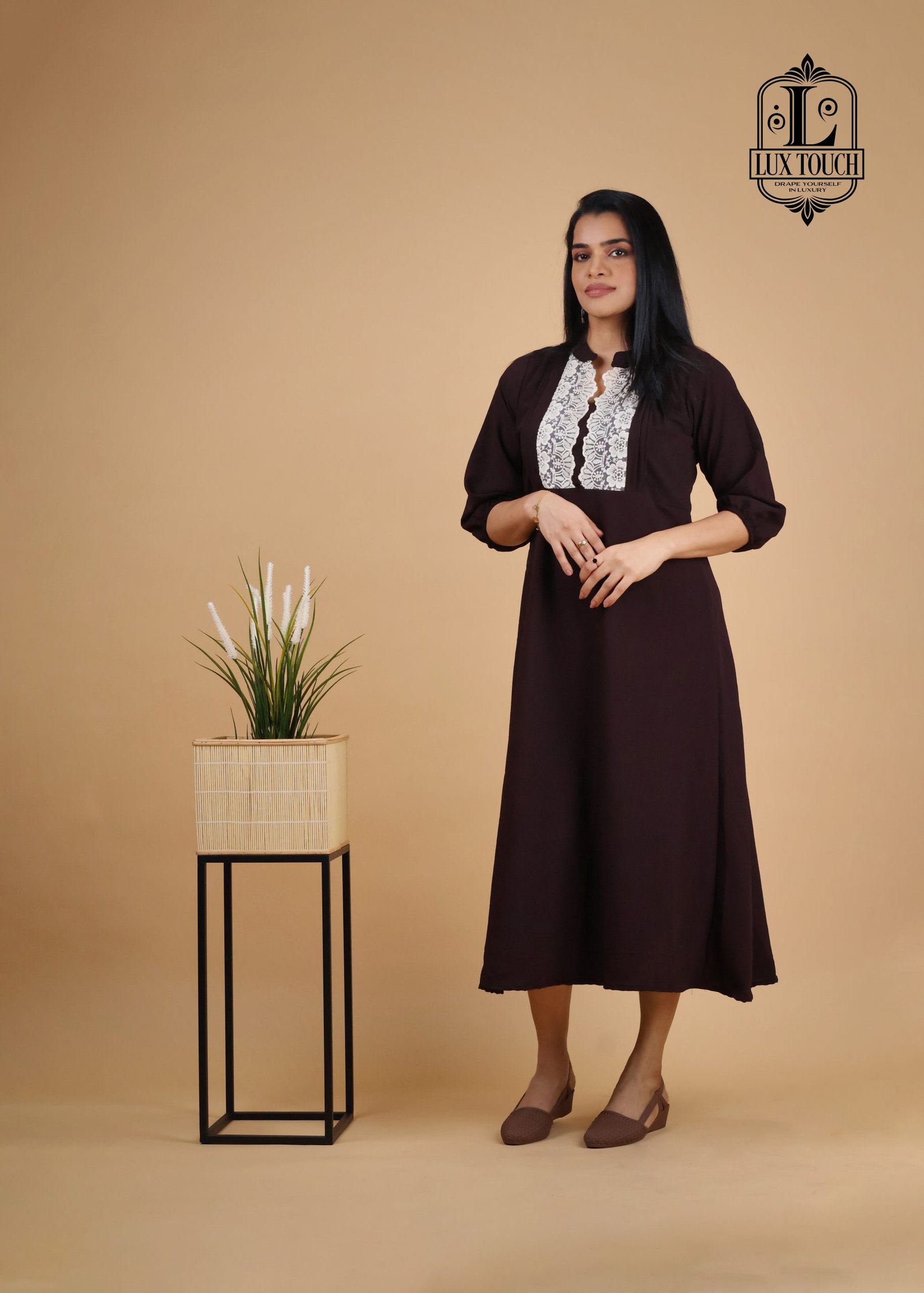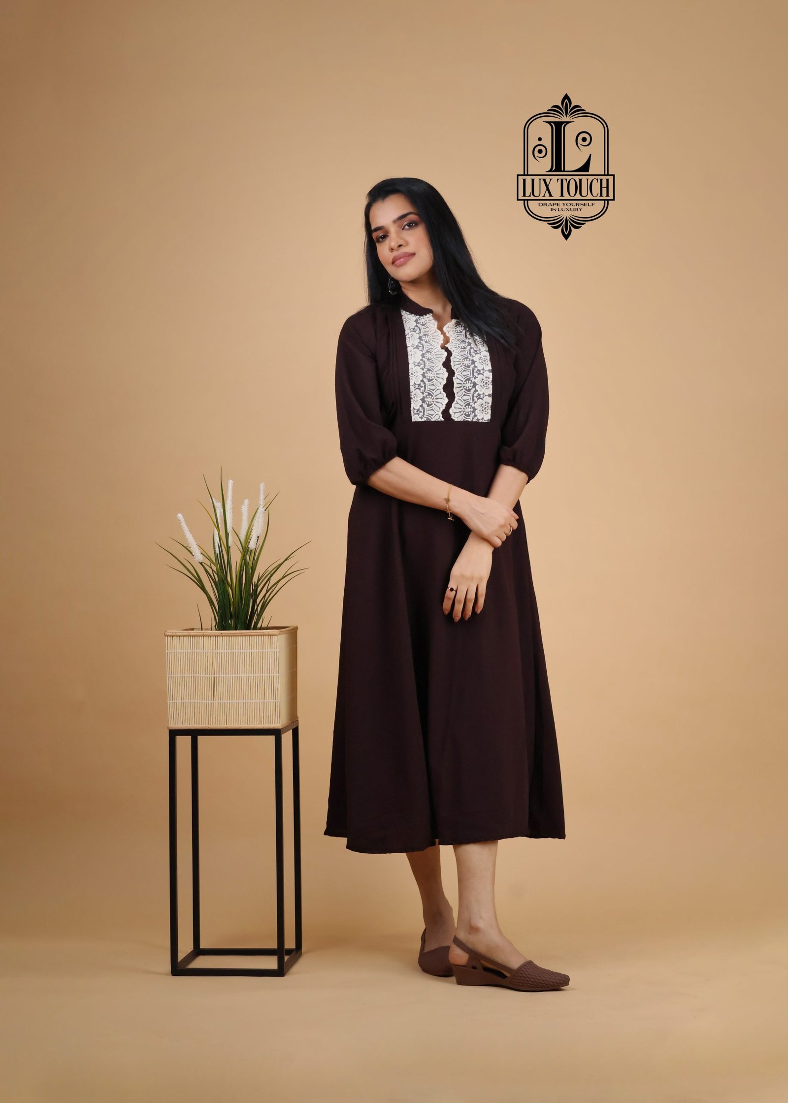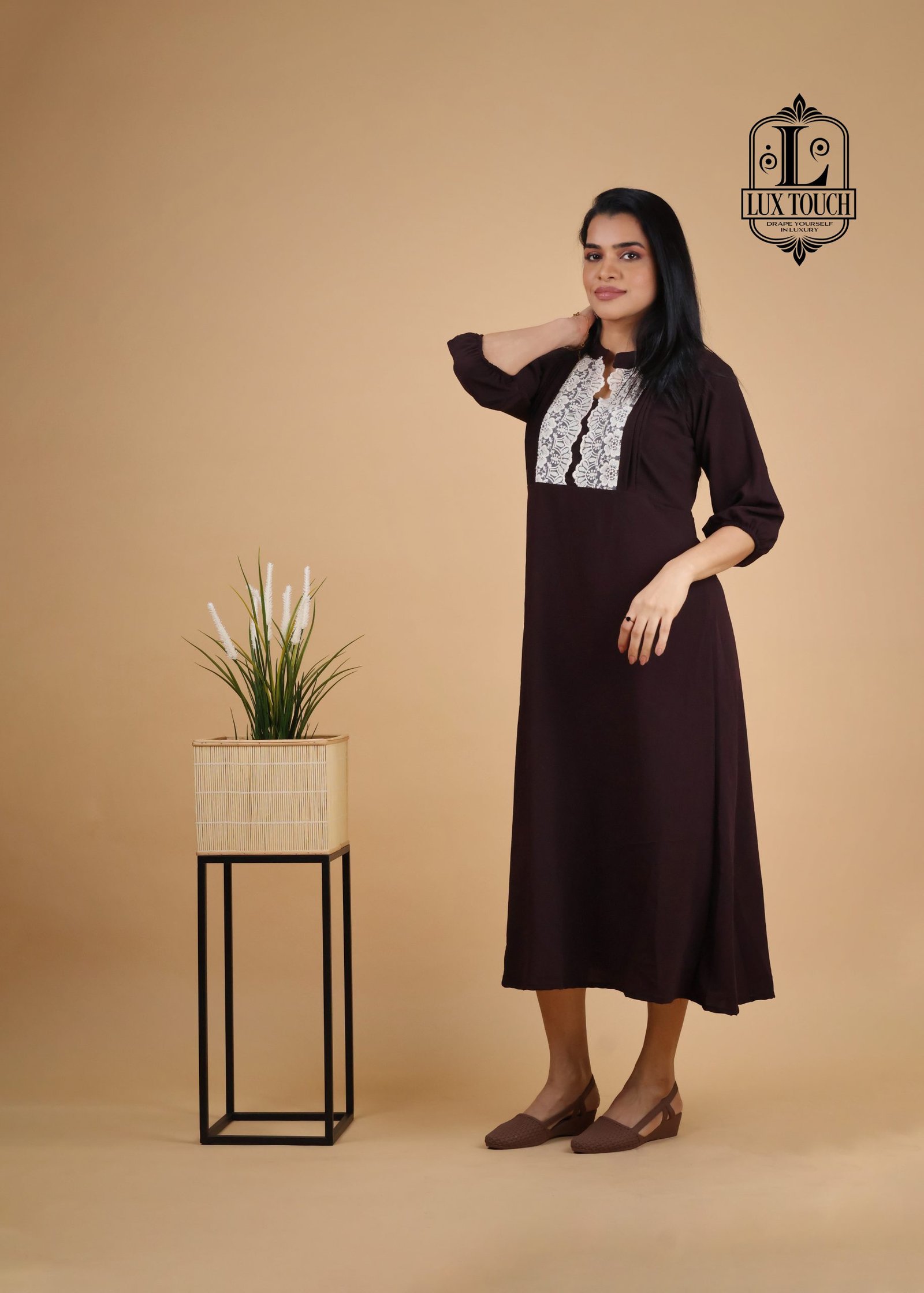 Made from high-quality materials, this dress is designed to provide a flattering silhouette while ensuring comfort throughout the day or evening. It is often adorned with additional decorative elements such as beads, sequins, or pearls, enhancing the lace and giving it a subtle sparkle. The perfect choice for formal events, parties, or evening outings, the lace-embellished dress radiates an air of refined beauty and sophistication. Pair it with elegant heels and minimal jewelry for a polished, feminine look.