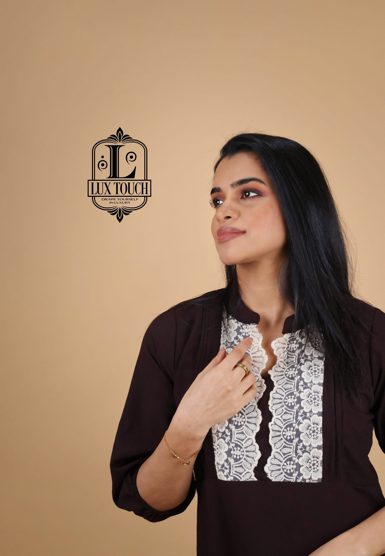 Lace Embellished Dress is a perfect blend of sophistication and charm, designed to make you stand out on any occasion. This dress features intricate lace detailing, delicately woven into the fabric to add texture and elegance. The lace embellishments may adorn the neckline, sleeves, or hemline, creating a romantic, timeless look.