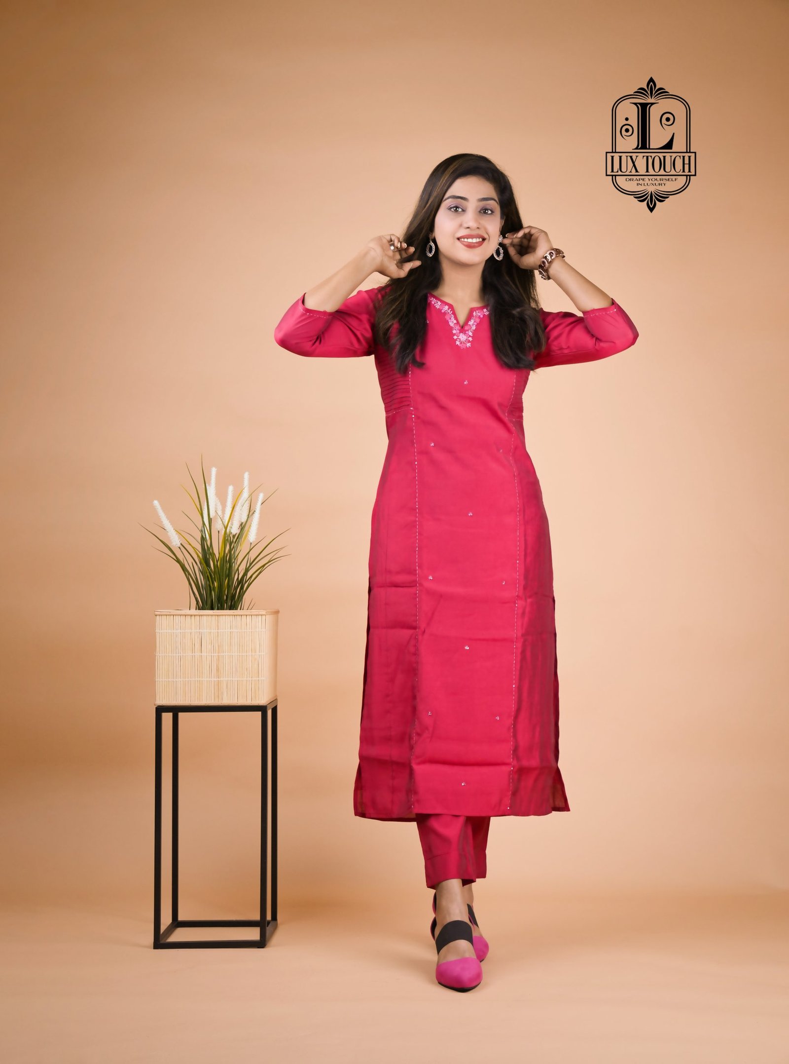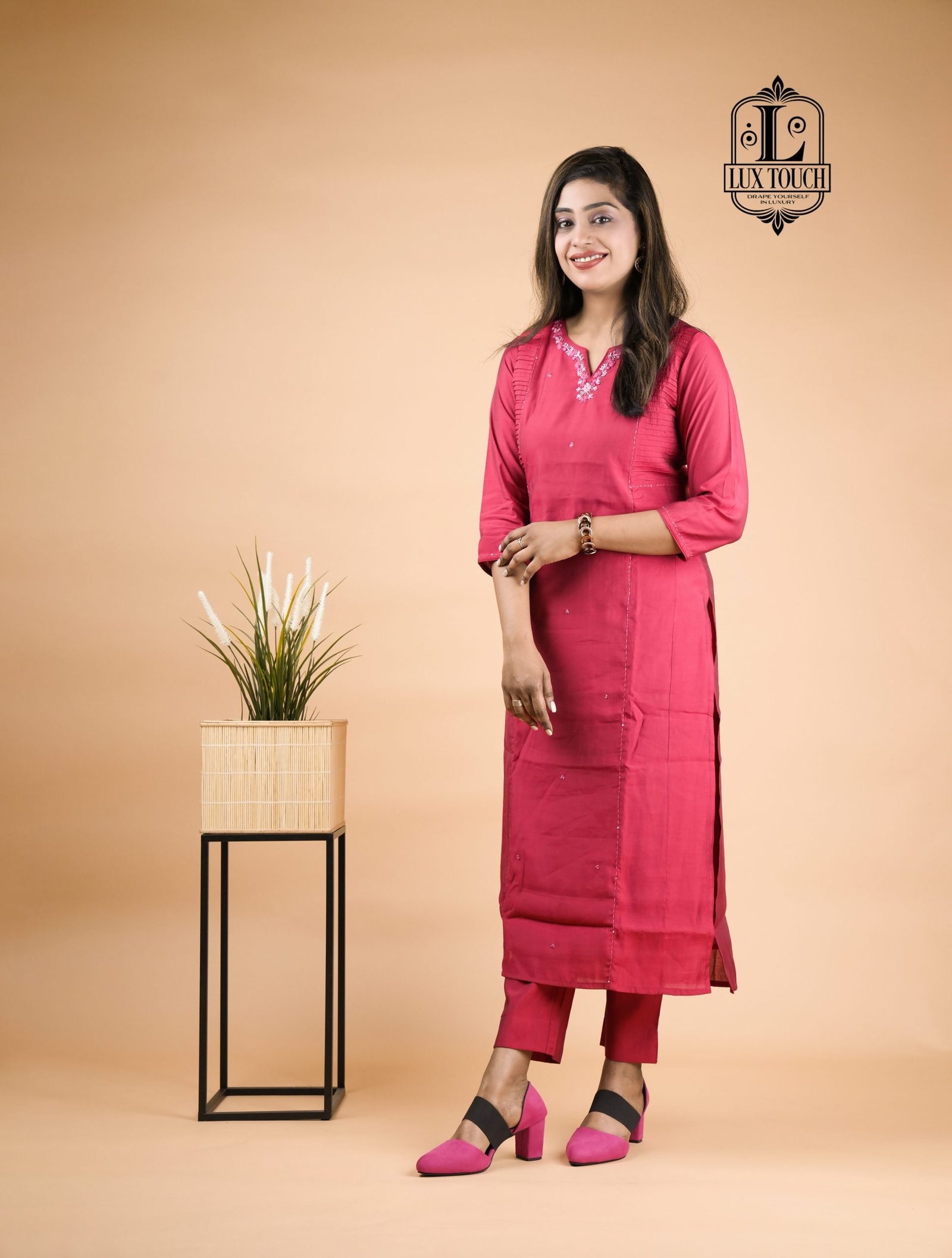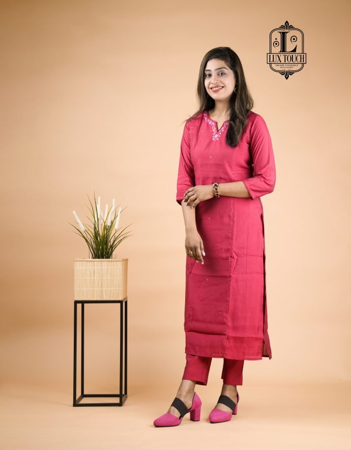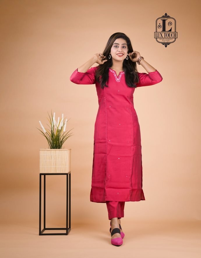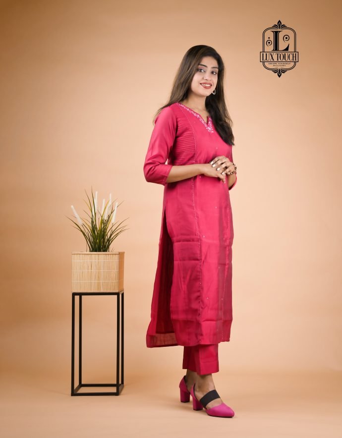 The standout feature of this set is theĀ cord detailing, often seen in the form of drawstrings or decorative cords on the neckline, waist, or cuffs. These cords add a contemporary touch to the traditional fabric, elevating the overall design with a stylish, tailored finish. The set is perfect for casual or semi-formal occasions, offering a chic yet comfortable look. The rich, lustrous finish of muslin silk combined with the intricate cord accents makes this set a versatile and refined addition to any wardrobe.