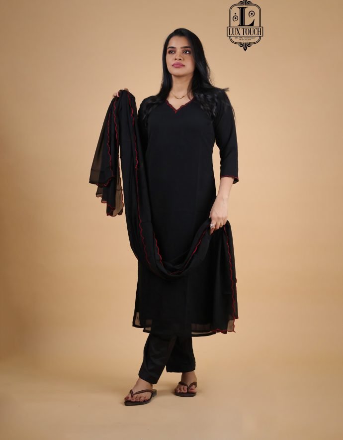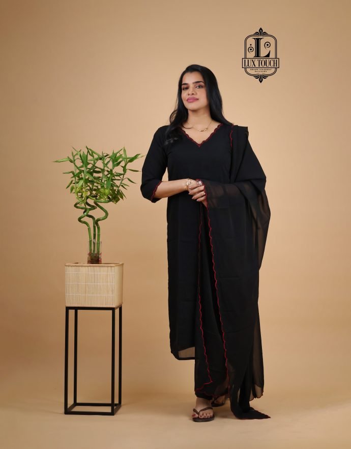 The PLAIN SCALAP HIGHLIGHTED SUIT SET combines classic sophistication with contemporary charm. Made from premium-quality fabric, this ensemble showcases scalloped borders that add a refined touch to the design. Subtle highlights along the edges lend a hint of glamor without overpowering the minimalist appeal, making it versatile for both formal events and casual gatherings. The breathable, soft material ensures comfort throughout the day, while the flattering silhouette complements various body types.