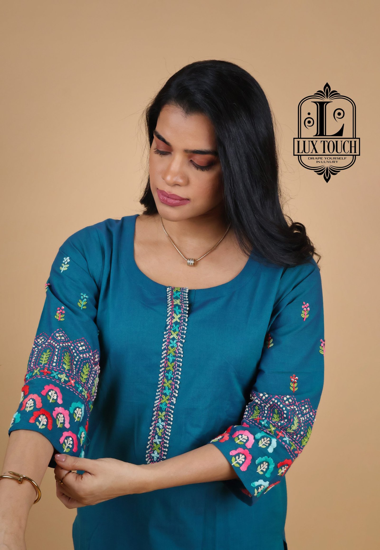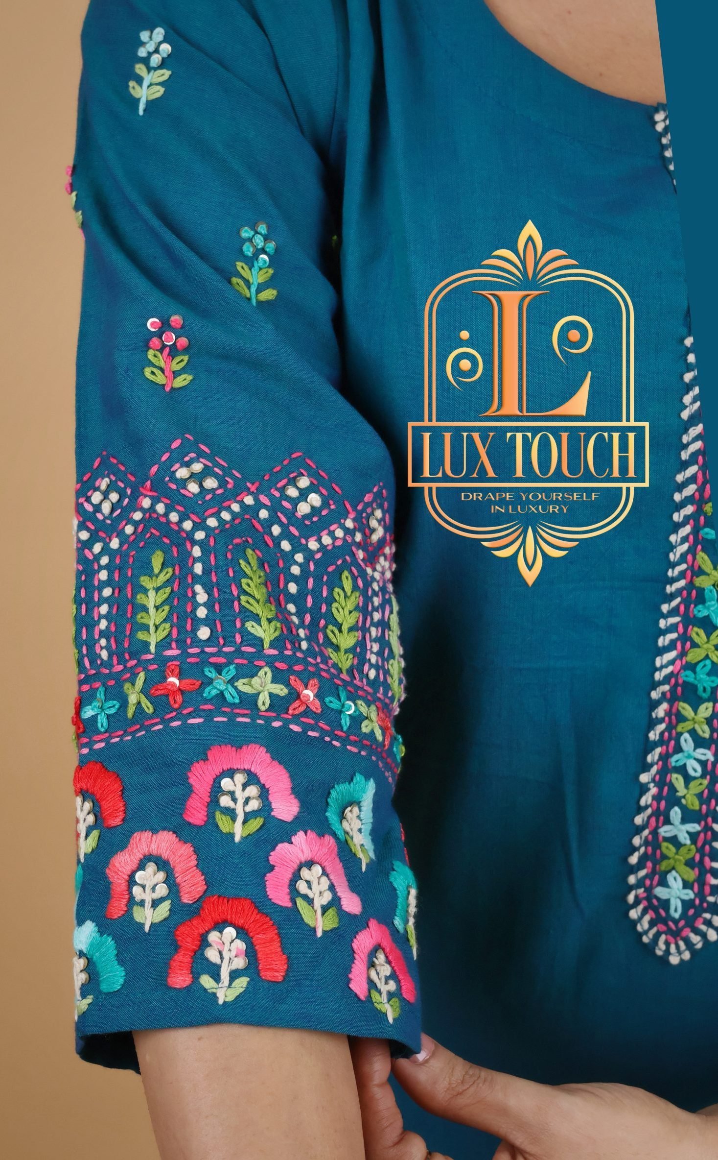 The Premium Khadi Hand Embroidered collection showcases the perfect blend of traditional craftsmanship and modern elegance. Made from high-quality khadi fabric, known for its natural texture and breathable qualities, this garment is both comfortable and eco-friendly. The hand-embroidery, often featuring intricate floral, geometric, or traditional motifs, adds a touch of artistry and sophistication to the fabric.