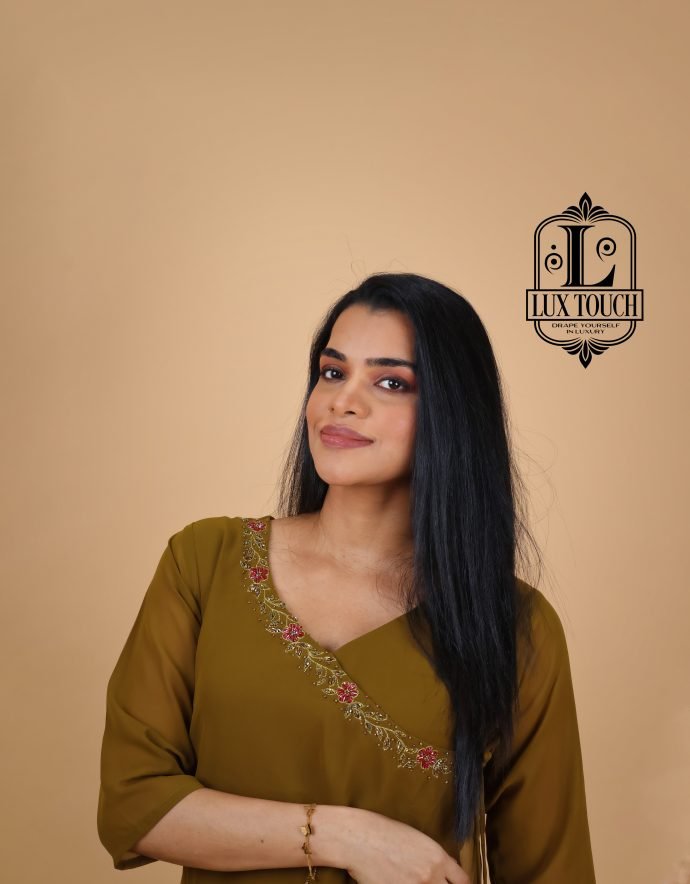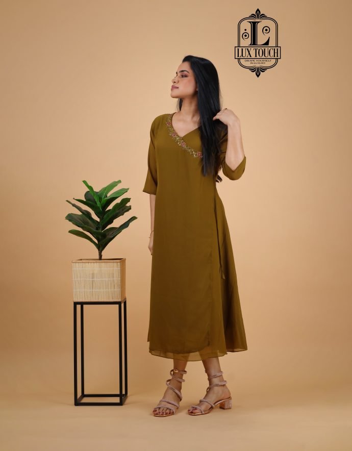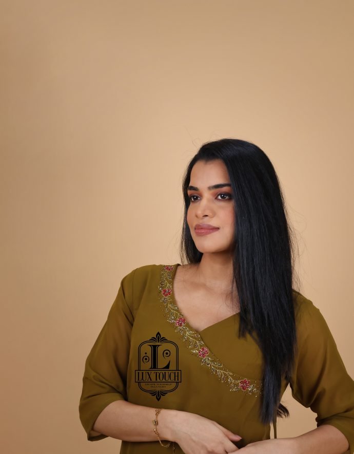 Overlap Type blends traditional craftsmanship with modern design. Featuring intricate semi-handwork embroidery, this kurti boasts beautiful detailing, combining machine embroidery with delicate hand embellishments. The stylish overlap design adds an elegant twist, creating a flattering, asymmetrical look. Perfect for festive occasions or casual gatherings, this kurti is made from high-quality fabric and offers a comfortable, chic fit.
