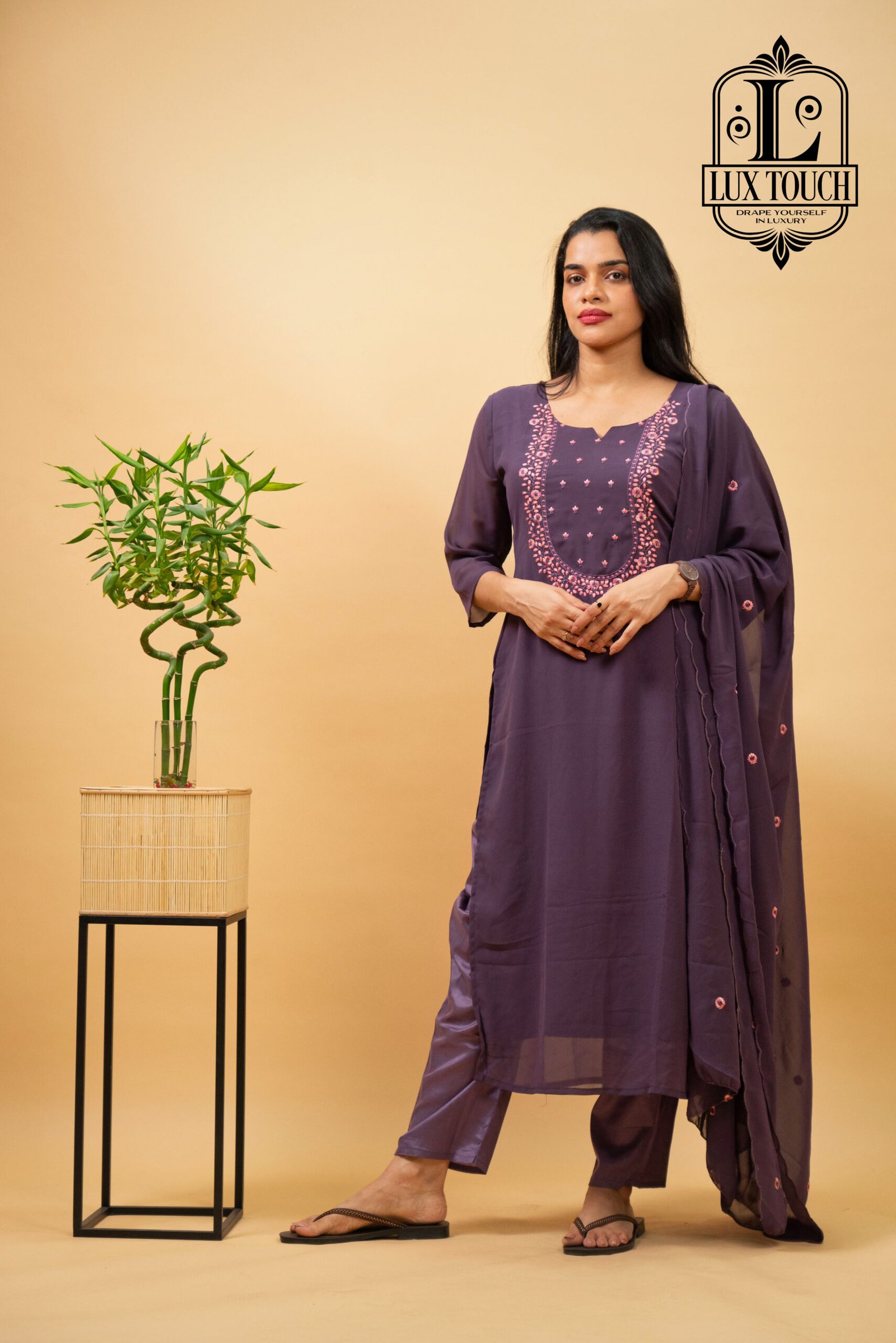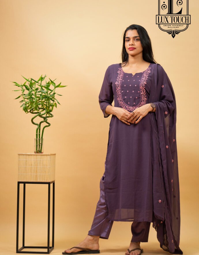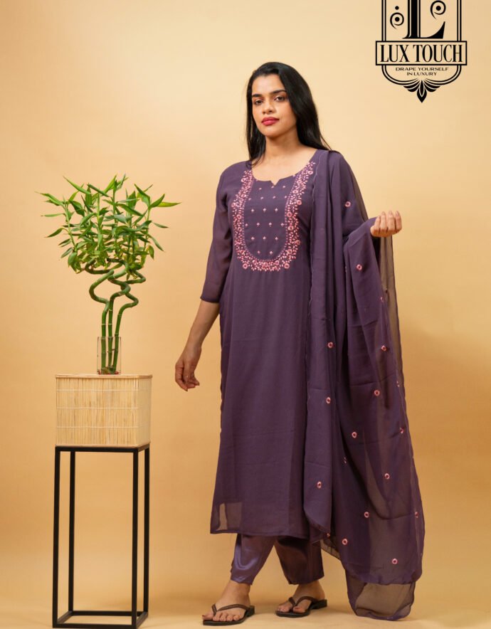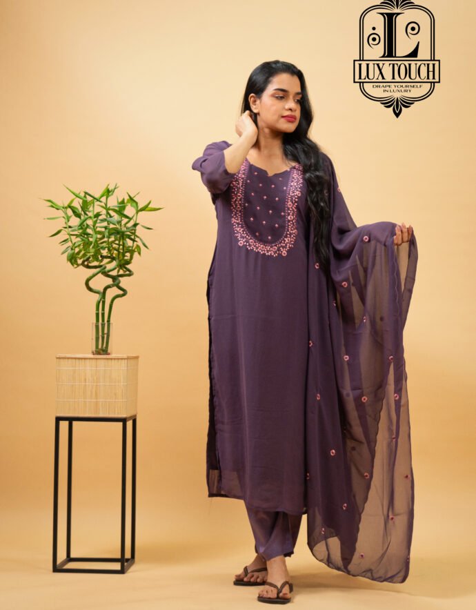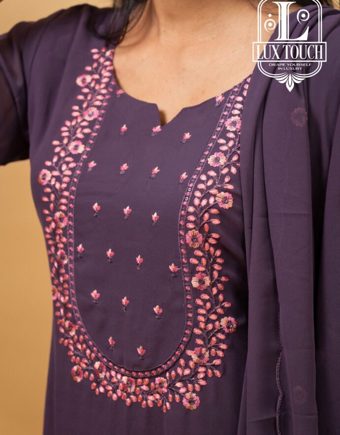 SKU: ST3-NEC-EMB-VIOLET Category:Suit-Sets Tag:Casual