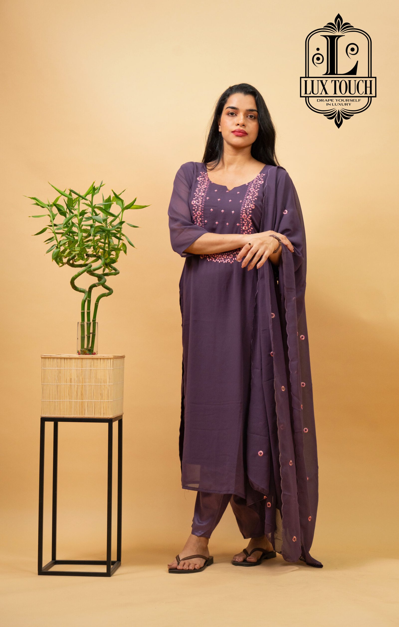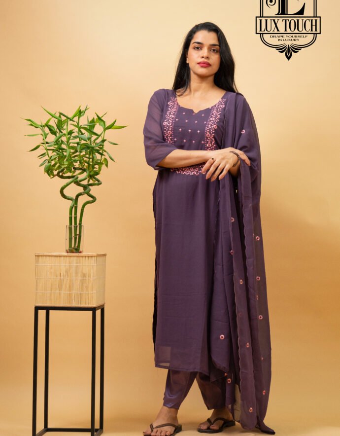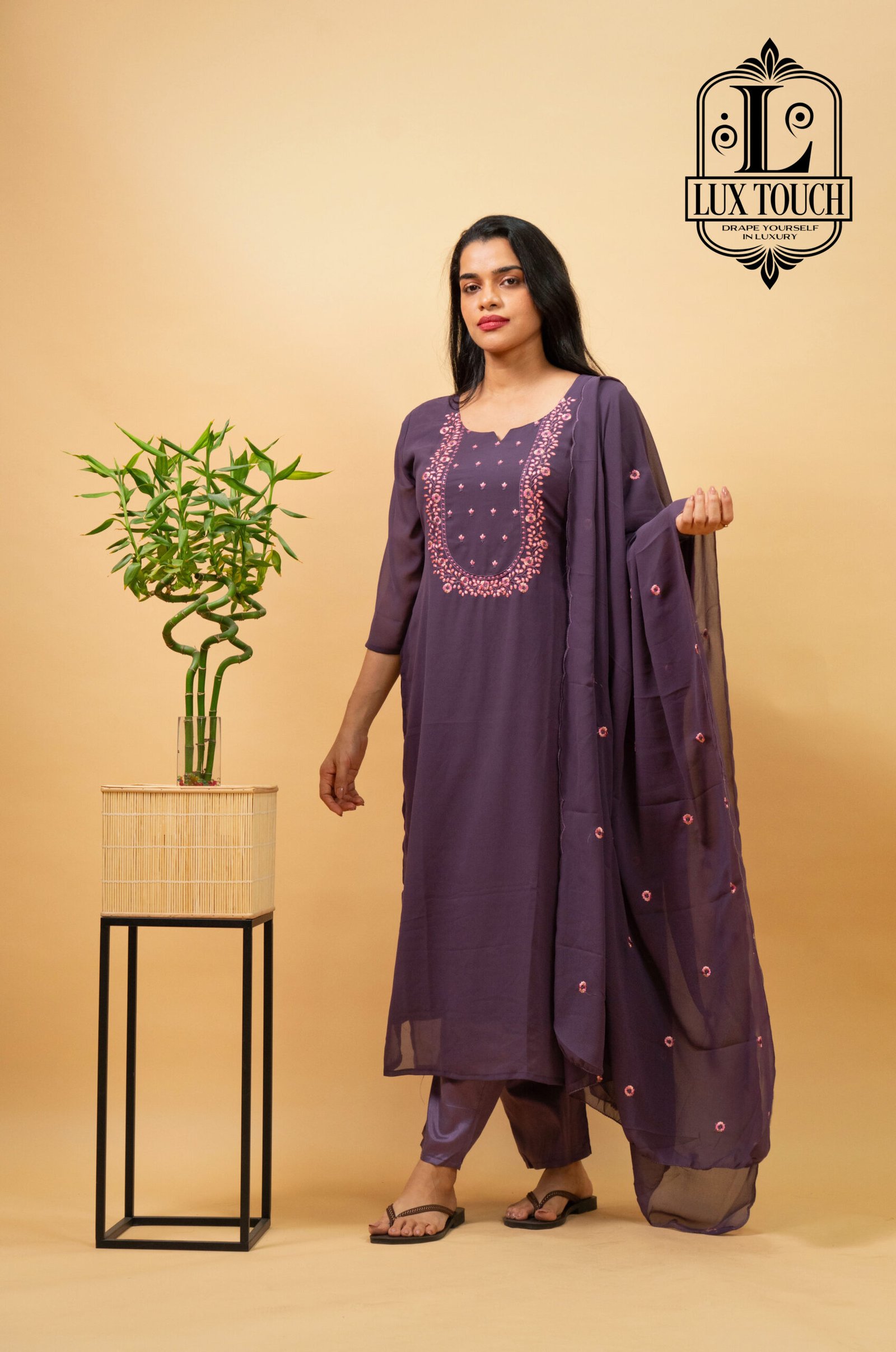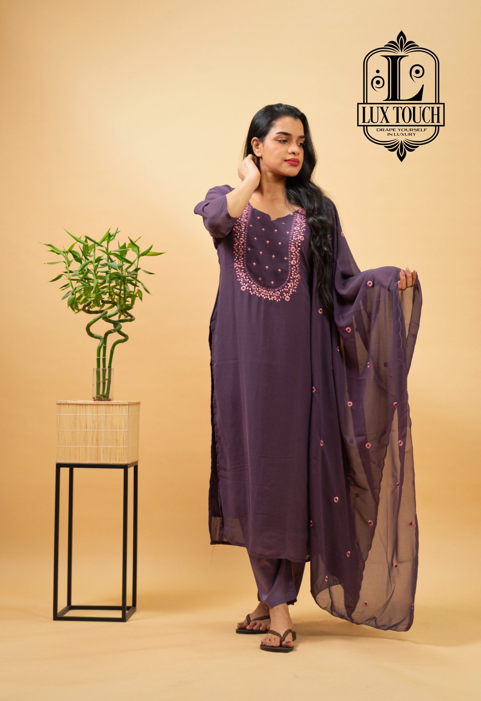SKU: ST3-NEC-EMB-VIOLET Category:Suit-Sets Tag:Casual